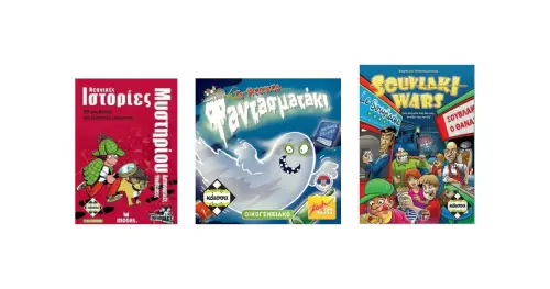 Ιστορίες Μυστηρίου (Black Stories): Μόνο κάρτες! Ιδανικό για την αναμονή στην ταβέρνα. Μια ιστορία, πολλές ερωτήσεις και καθόλου οθόνες μέχρι να έρθει το φαγητό. Μπορείτε να το παίξετε και στο αυτοκίνητο ή το τρένο μιας και είναι προφορικό παιχνίδι.